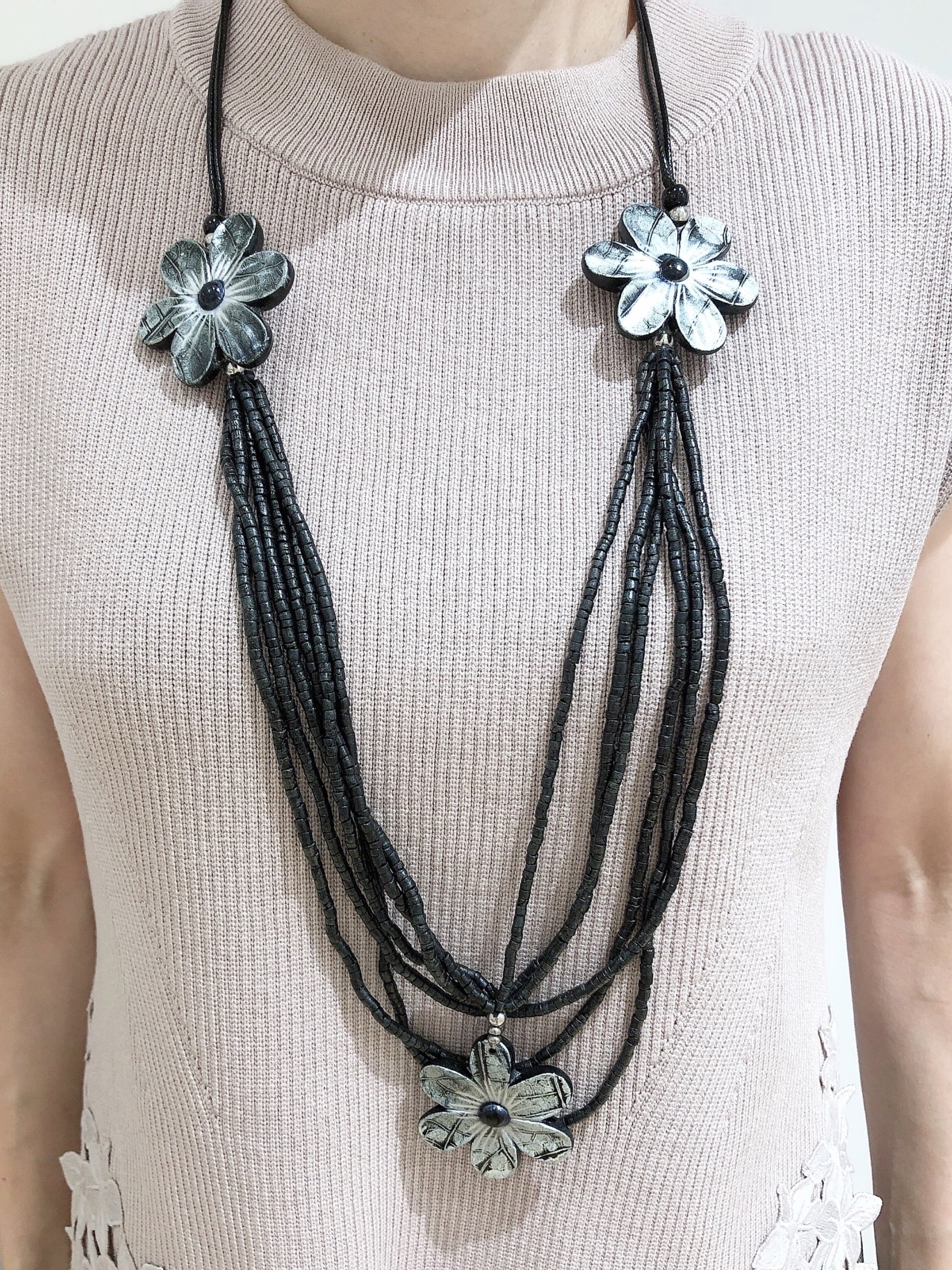 ネックレス 花 ブラック